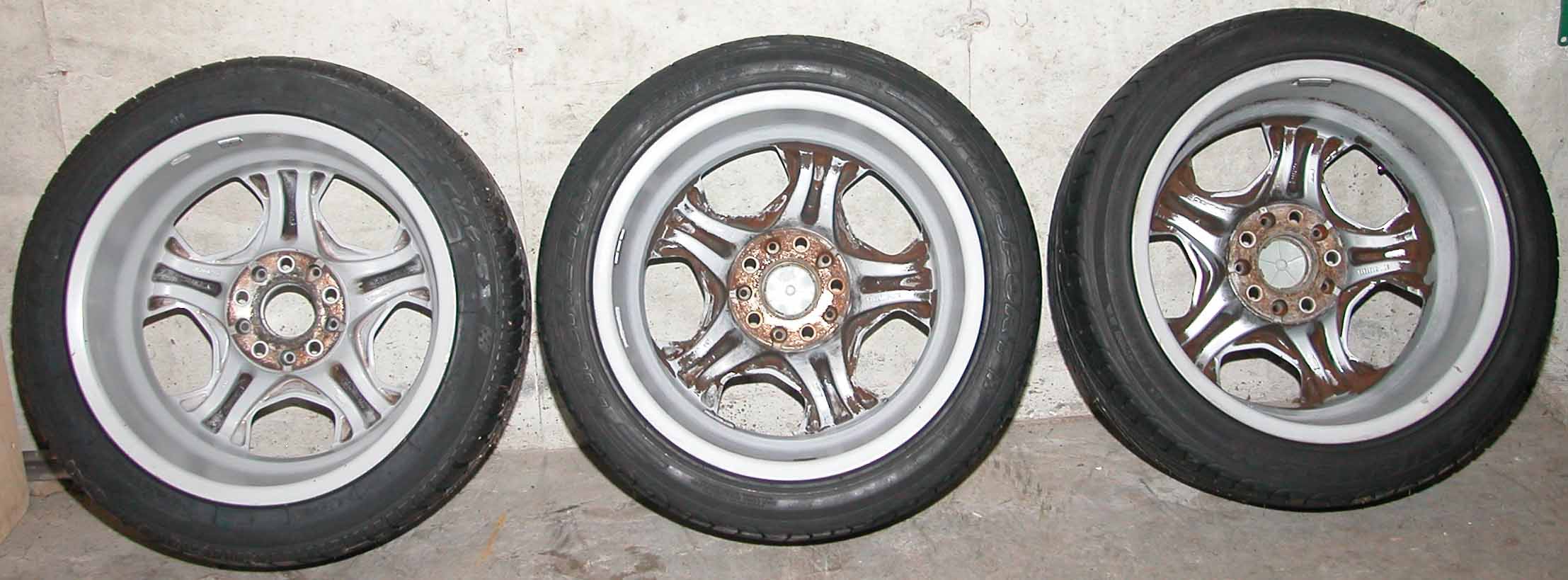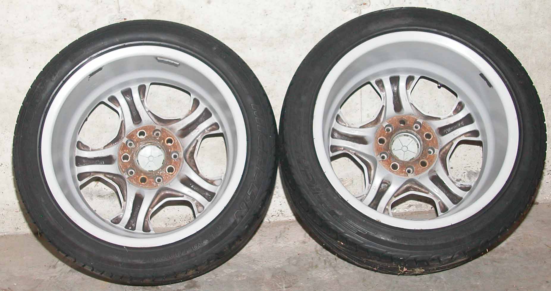 Wheels are original factory with only slight curb rash/scratches. Tires